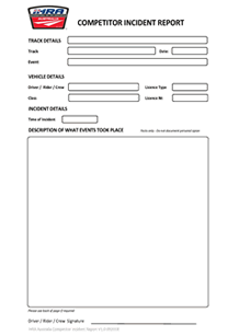 COMPETITOR INCIDENT REPORT    PROFESSIONAL LICENCING EVALUATION FORM